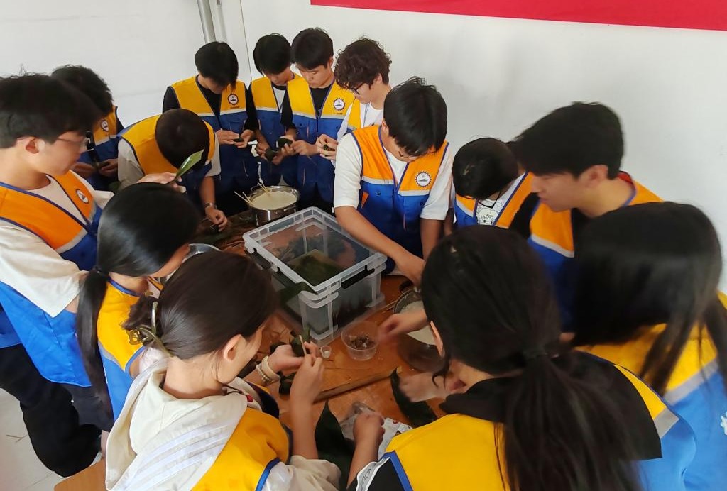 活动中,社团成员精心包制200余个粽子,从选材、包裹到蒸煮,每个环节均细致入微。同学们将粽子规范包装,附上祝福卡片,为各位老师送去粽香萦绕的端午祝福。这份融合了传统工艺与学子心意的礼物,既展现了同学们精益求精的工匠精神,更传递了对老师辛勤培育的感恩之情。
