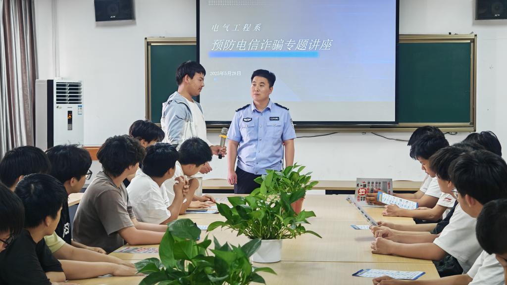 为增强学生对电信诈骗的识别和防范能力,5月28日下午,电气工程系在1号教学楼338举办预防电信诈骗专题讲座,诚邀伊滨区派出所郭朝辉警官主讲,24级学生代表参加活动。