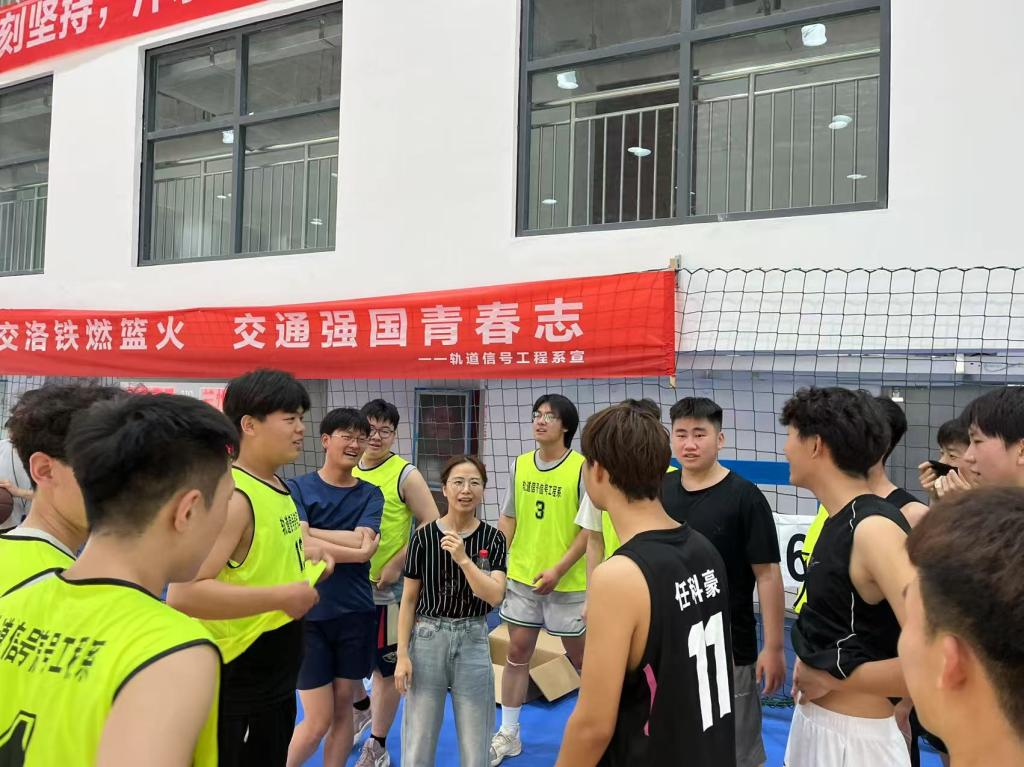 为加强校校之间的交流合作,丰富学生实习培训期间的文体生活,4月16日下午,兰州交通大学赴我校培训实习的师生与我校轨道信号工程系在体育馆联合举办了一场“兰交洛铁燃篮火,交通强国青春志”为主题的篮球友谊赛。
