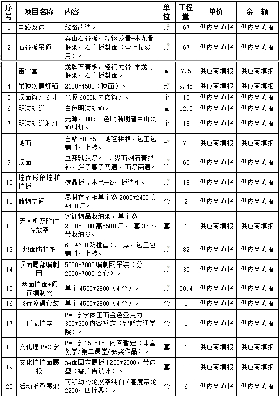 为满足商品信息采编需求,提升学生商品信息采编能力。拟对商品信息采编实训室进行环境改造。现按照相关规定,就该项目进行公开询价,欢迎符合条件的供应商积极参与。