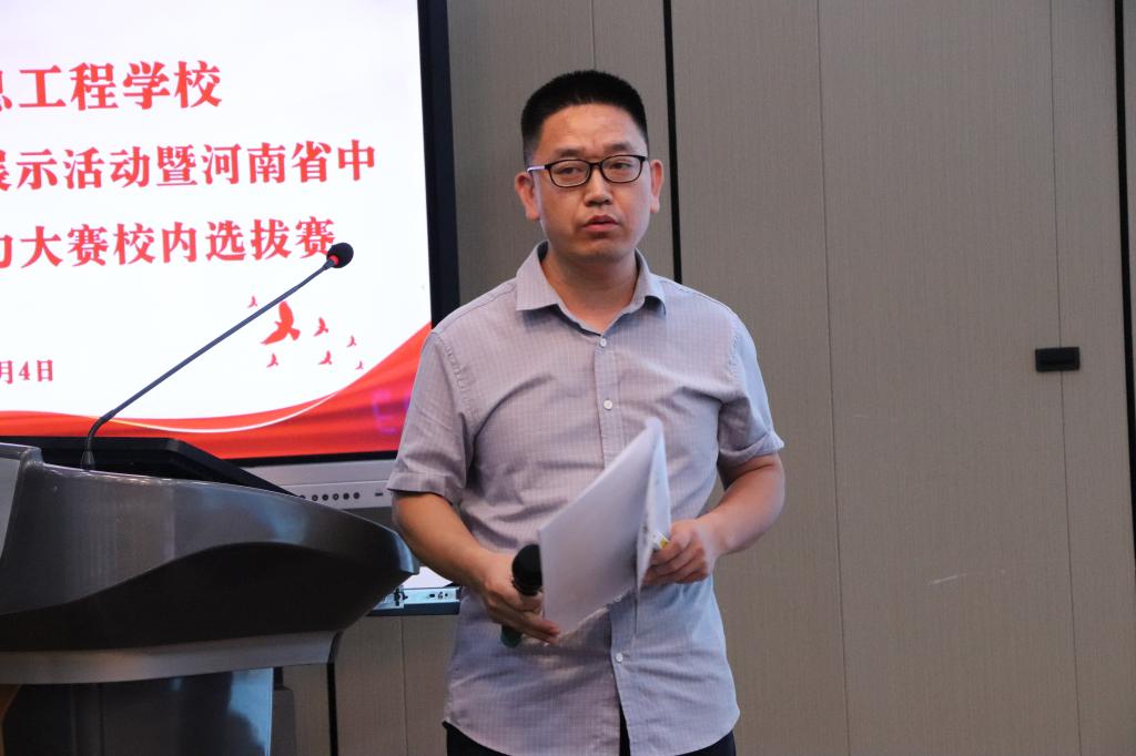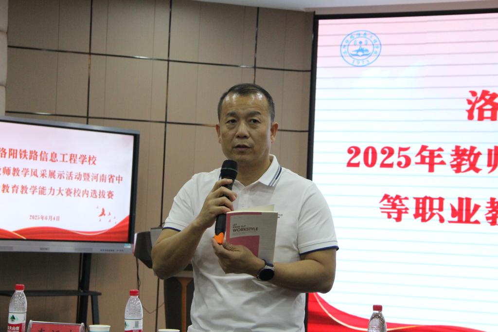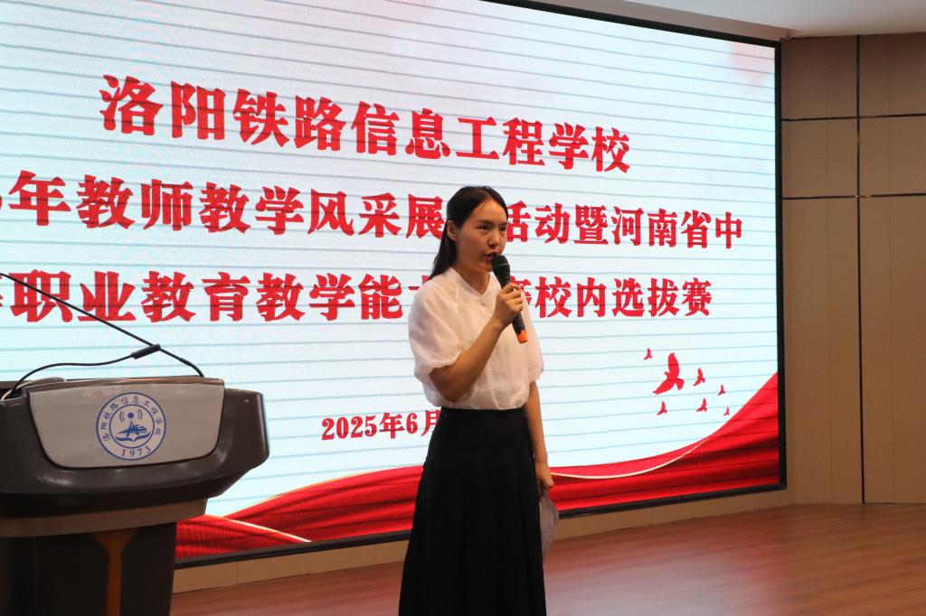 为进一步推进高水平教师教学团队建设,全面促进教师教学能力提升,不断夯实学校内涵建设基础。6月4日下午,我校在2号教学楼智慧大讲堂顺利举办2025年教师教学风采展示活动暨河南省中等职业教育教学能力大赛校内选拔赛。副校长李力厚、各系部教学主任、教研室主任及骨干教师代表参加了本次活动。活动特别邀请了洛阳文化旅游职业学院课培中心主任陈伟、河南林业职业学院正高级讲师张春宜和我校多位高级讲师担任赛事评委。