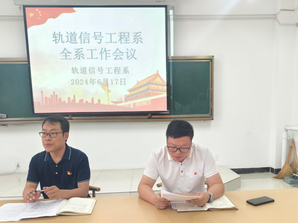 6月17日上午,轨道信号工程系在一号教学楼238召开学期工作总结会议,全系教职工参加,会议由系主任张建平主持。