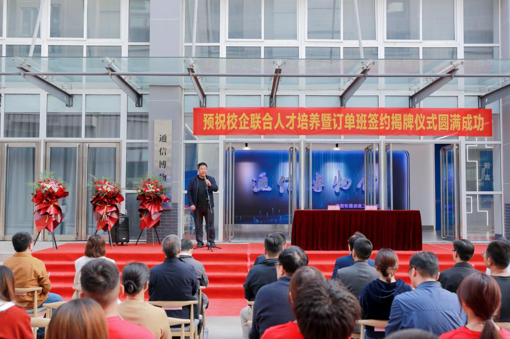 仪式上,李林榕、李文光代表学校分别与中兴通讯股份有限公司和洛阳联通公司签订人才培养协议并为两个订单班揭牌。