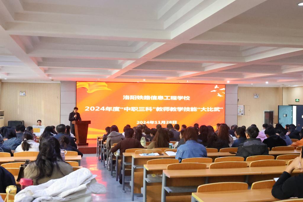 为充分发挥教学比赛的示范引领作用,促进我校教师用好国家统编版“中职三科”教材,提高课程设计能力和教学实践能力,持续深化课堂教学改革。11月28日下午,我校在思政大讲堂顺利举办2024年度“中职三科”教师教学技能大比武活动。校领导于庆斌、李文光、李力厚,各系部及相关科室负责人,各教研室主任及全校专兼职教师代表参加了本次活动。活动特别邀请了我校近年来省优质课评选一等奖获得者魏春燕、李传军、刘小波、赵璞担任评委。本次活动由教学工作部部长张波主持。